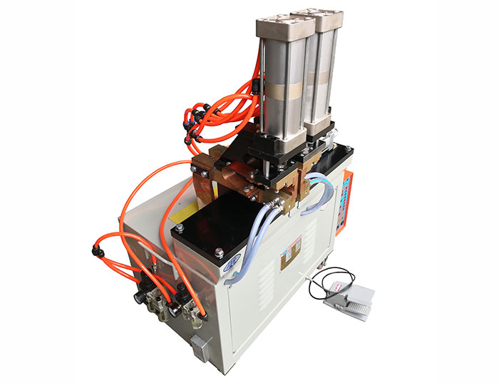 電極垂直加壓,配合不同的夾具電極,可對(duì)焊線材,管材,扁鐵等不同形狀的產(chǎn)品。